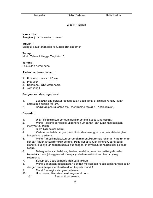 Scribd es red social de lectura y publicación más importante del mundo. Enter your weight in Kilograms. Bateri Ujian Kecergasan Fizikal Berdasarkan Kesihatan yang terdapat dalam SEGAK adalah seperti berikut.