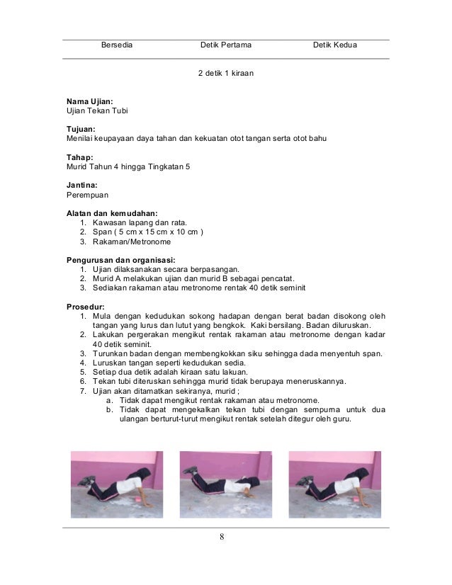 Ujian segak bahagian bangkit tubi bagi guru pelatih program persediaan ijazah sarjana muda pendidikan generik kesihatan dan kecergasan gkk tujuan. Tekan tubi tekan tubi suaian1 minit 3. Ringkuk tubi separa 1 minit 4.