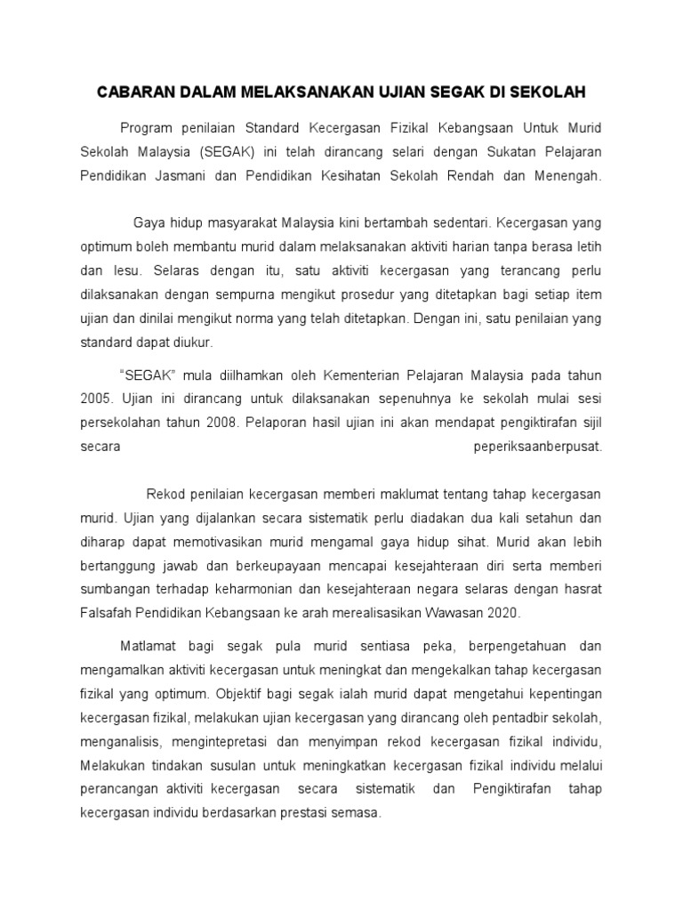 Cabaran Dalam Melaksanakan Ujian Segak Di Sekolah Pdf